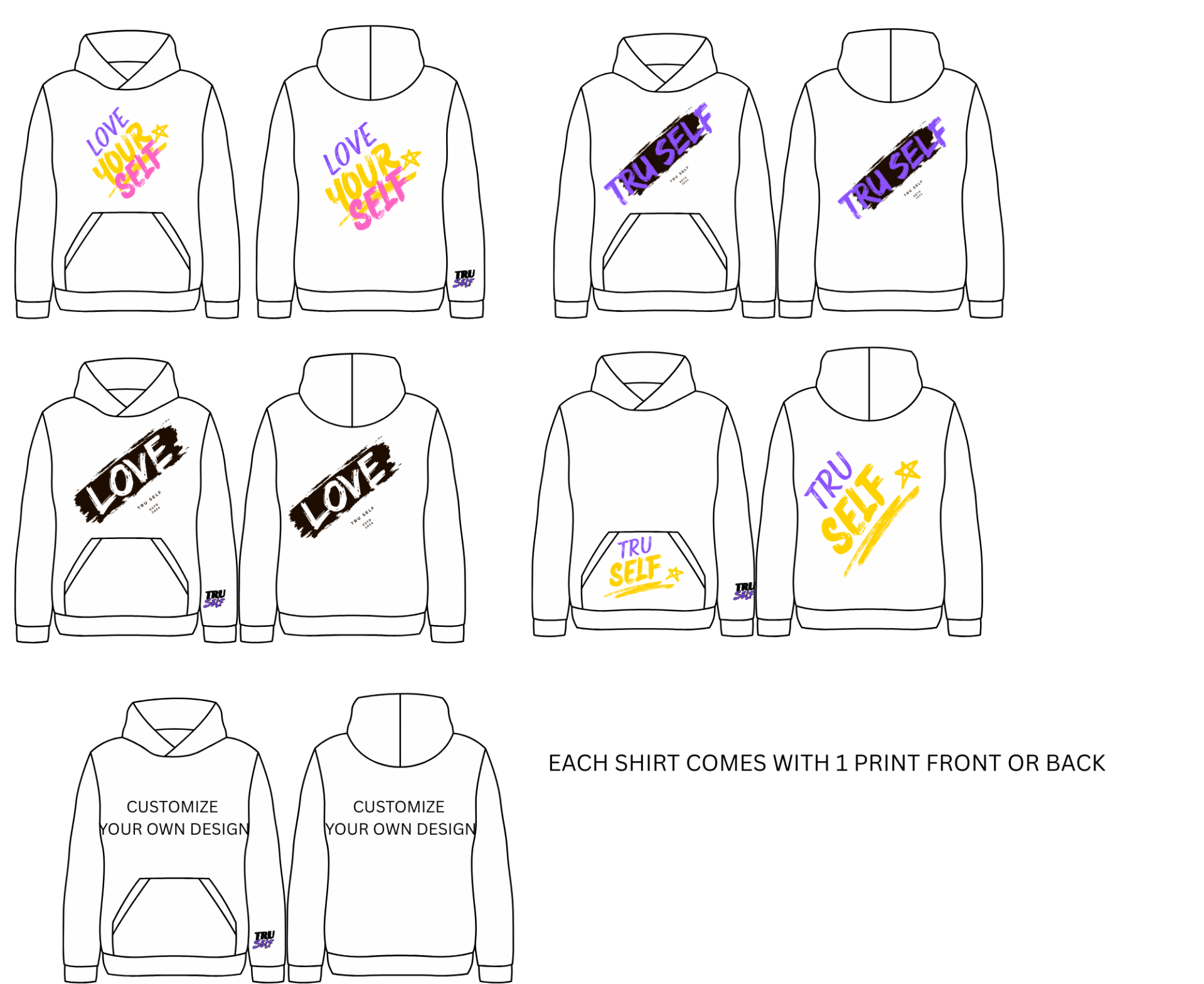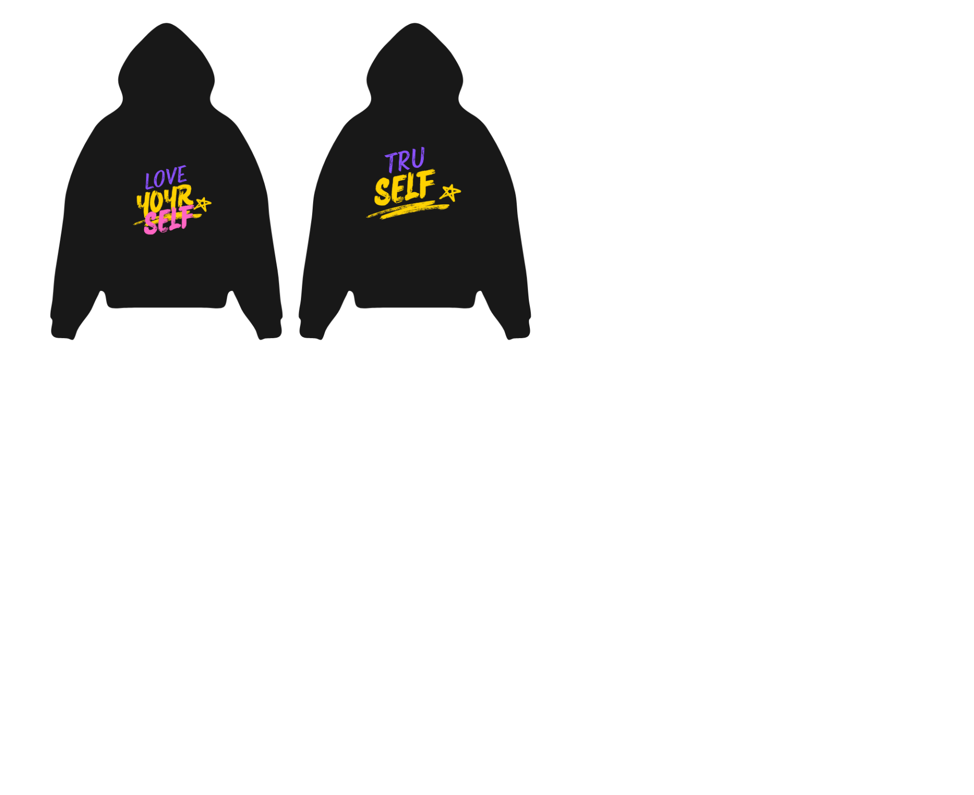 "Love Yourself" HOODIE — by Tru Self by K-Lynn This isn’t just a hoodie—it’s a statement. Custom-cut for confidence and designed to move with your vibe, this tee reminds the world that Only You Define You. Whether the bold print is front and center or making waves from the back, you’re serving self-love, realness, and Tru style.